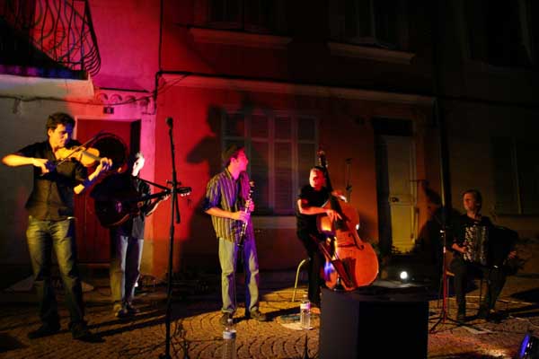Ces cinq musiciens vous invitent à un voyage éclectique au cœur de l'Europe de l'Est et des Balkans, aux côtés des peuples nomades juifs et tziganes. Ils reprennent le flambeau des orchestres itinérants qui depuis des lustres animent à la moindre occasion la vie des communautés. Leurs routes musicales vont de Zagreb à Odessa, de Cracovie à Sofia, leurs carrefours se nomment Budapest ou Bucarest. Parfois s'ajoutent quelques incursions dans un jazz à la Django Reinhardt pour une petite touche d'improvisation manouche. Explorant simultanément et avec bonheur ces différentes traditions, ils peuvent vous faire danser sur le rythme endiablé des horas roumaines ou des danses yiddish et partager la magie de ces chants tziganes qui évoquent à la fois l'amour et la tristesse, les sorcières et l'ivresse. |